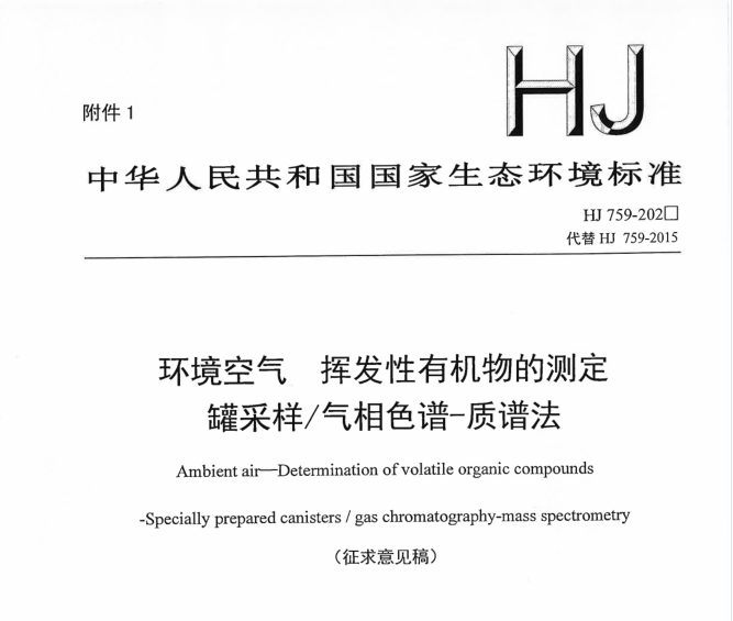 《環(huán)境空氣 揮發(fā)性有機(jī)物的測(cè)定 罐采樣/氣相色譜-質(zhì)譜法》迎